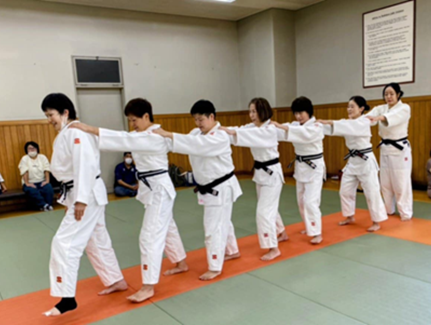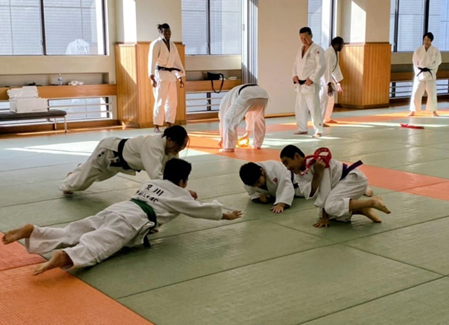 前半は柔道の動作を使った準備運動、また基礎トレーニングのウォーミングアップで楽しく身体を動かしました。柔道の経験が浅くても気軽に楽しく汗をかいている姿が印象的でした。